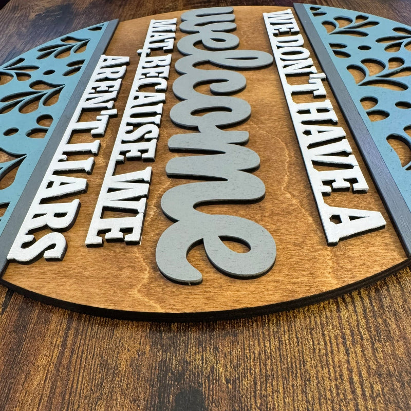 Welcome to our not-so-welcoming home! This 11.75 inch round sign may not be a conventional welcome, but it's honest. No fake pleasantries here, just pure snark and humor. Give your guests a laugh (and a warning) with this snarky sign.