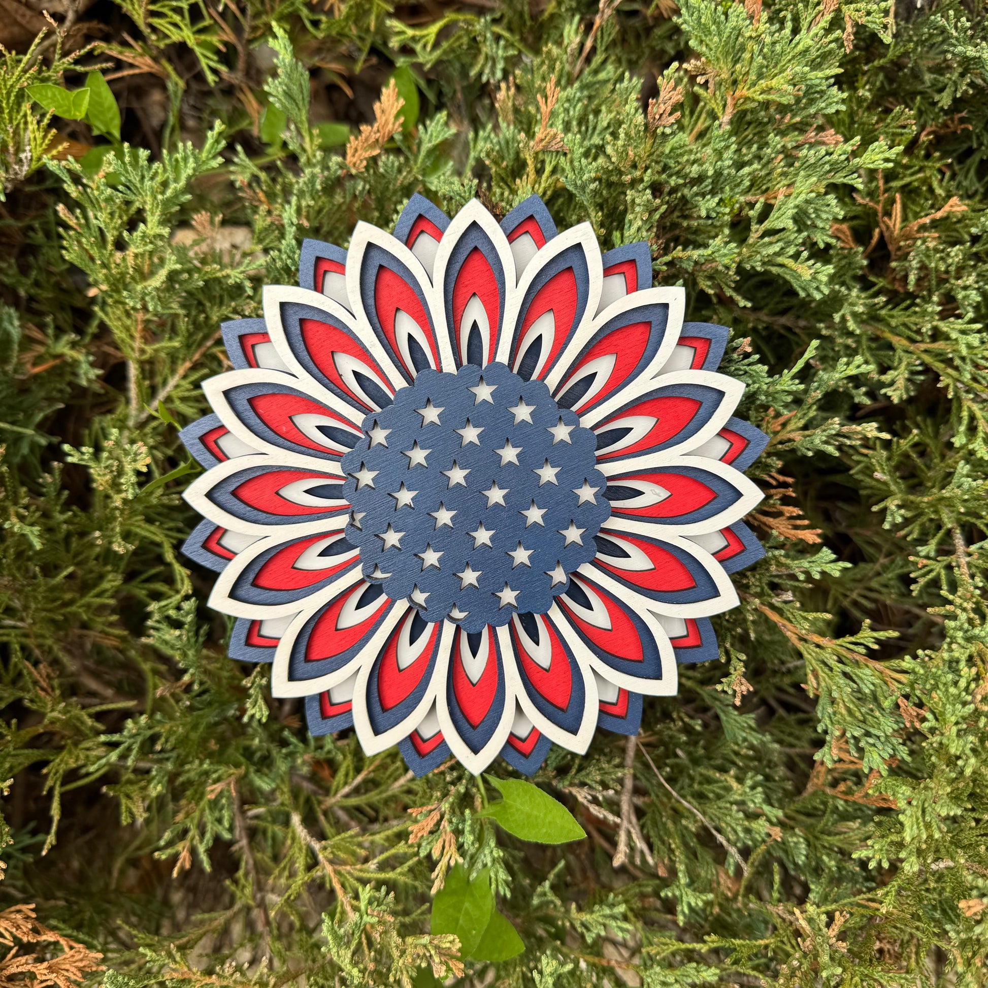 Make a bold statement with the America Sunflower Sign—an 11.75-inch wide masterpiece in striking red, white, and blue. This isn’t your average craft: with six intricate wood layers, the DIY Kit challenges your skills and rewards you with a stunning, dimensional display. Prefer ready-to-go? Grab the pre-painted, glued version for instant impact. Perfect for commanding attention on your door, standing proud on a shelf with an easel, or gifting to someone who dares to decorate differently. Own your patriotism with this beautiful layered wooden sign that demands to be noticed.