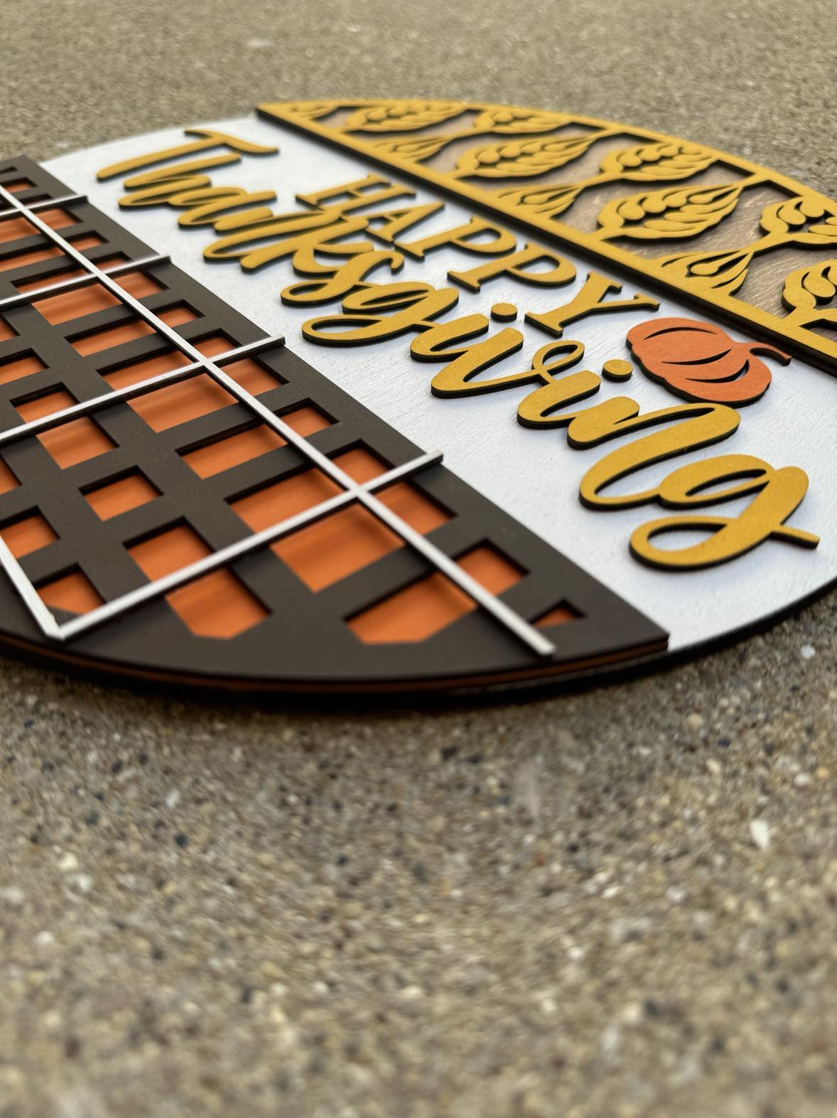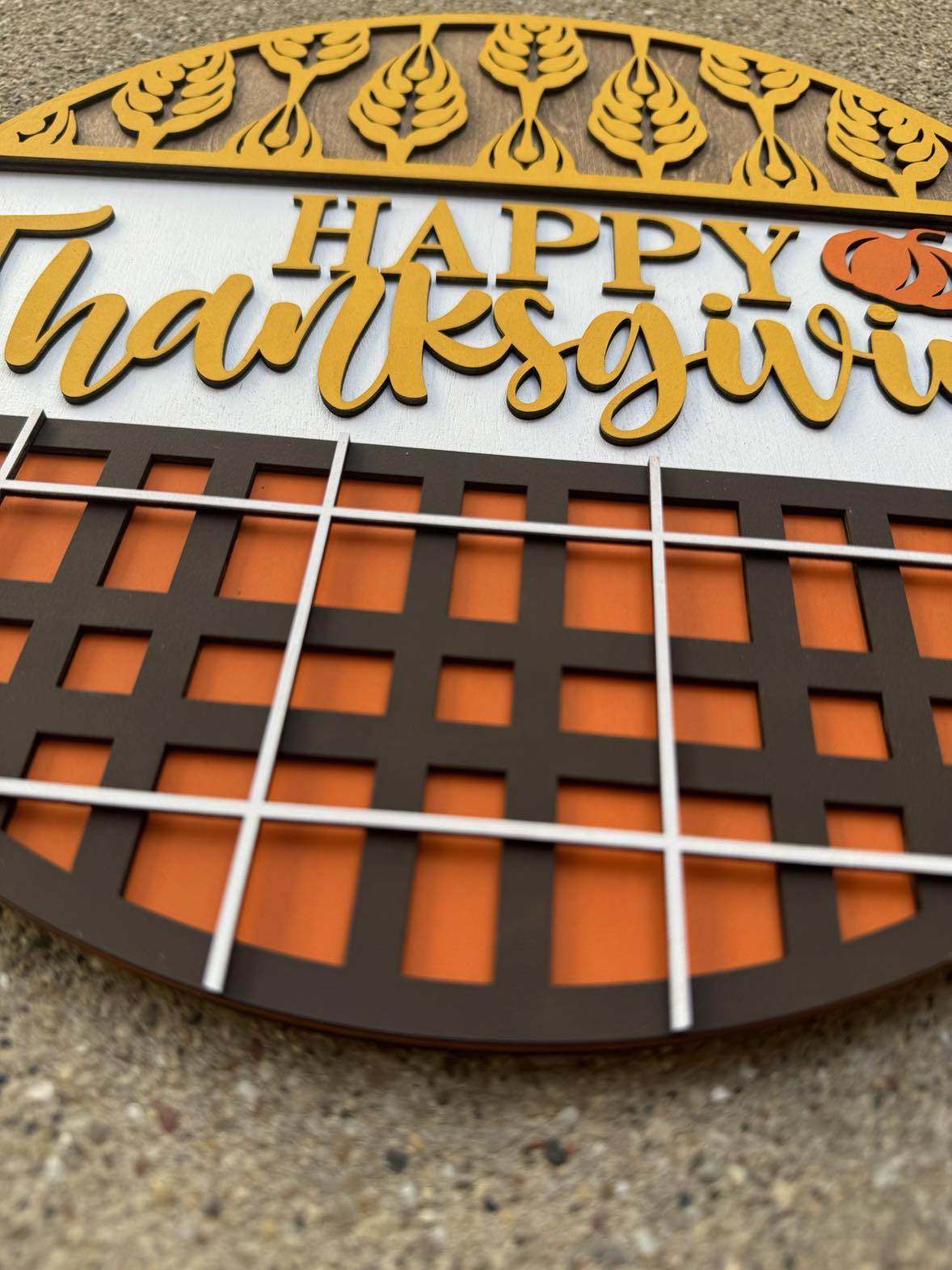 Welcome the harvest season with this striking 11.75-inch round sign that perfectly captures the essence of fall. Featuring charming plaid accents and festive "Happy Thanksgiving" messaging adorned with acorn motifs, this eye-catching decoration instantly infuses any space with warm autumn ambiance. The perfect statement piece for your entryway, dining area, or mantel, this versatile sign will elevate your seasonal décor and impress guests throughout the Thanksgiving season. Don't miss the opportunity to add this must-have accent to your holiday collection!