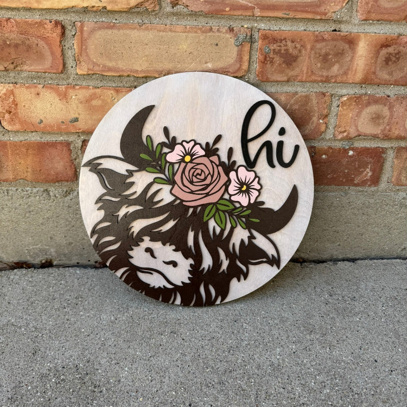 Welcome guests in style with our Highland Cow Welcome Sign. This adorable 11.75 inch round sign features a charming and lovable highland cow, adding a touch of whimsy to any space. Crafted with attention to detail, this super cute sign is perfect for any home or business.