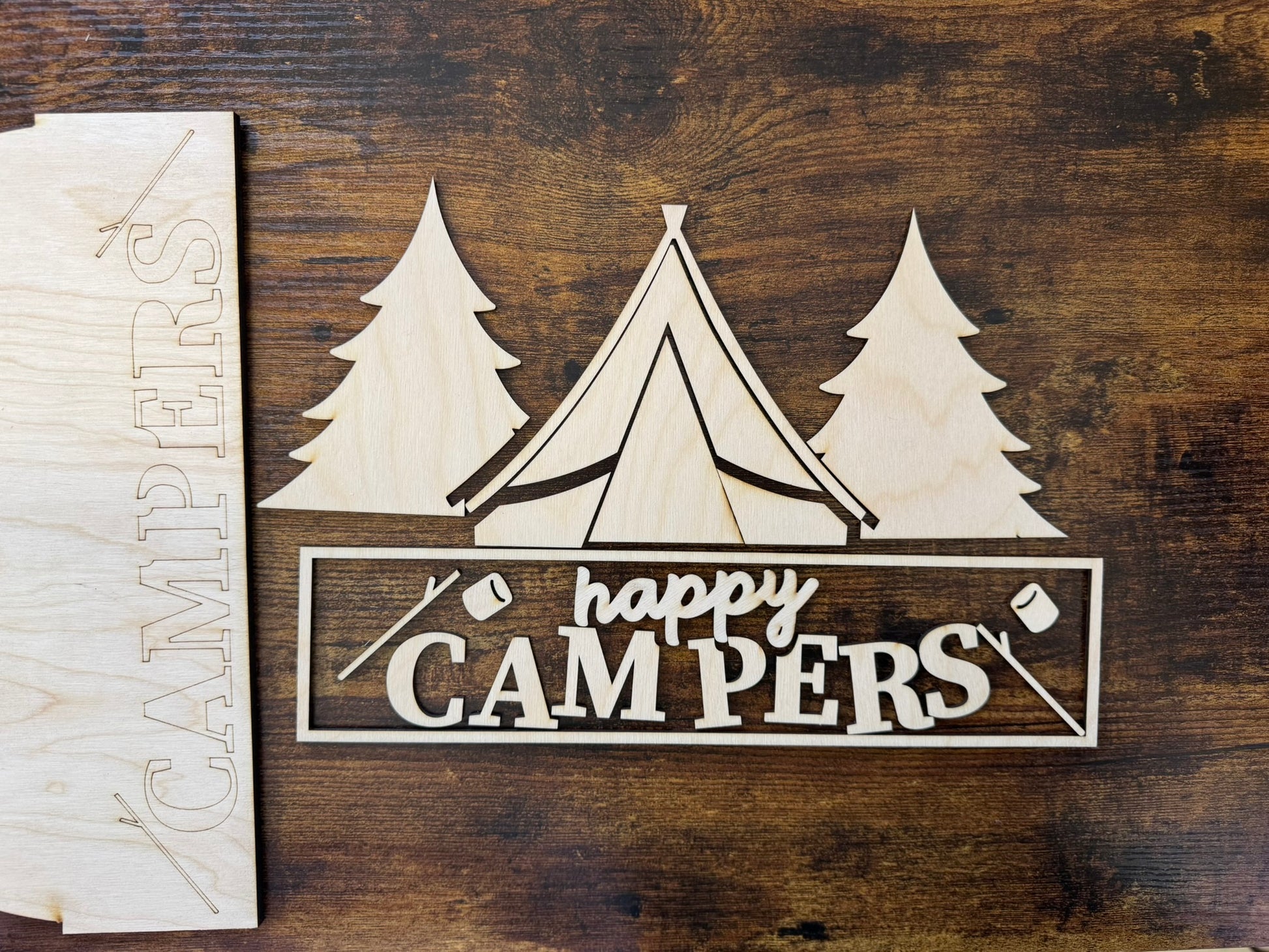 Get ready to gather around the fire with this Happy Camper sign! This 11.75 inch sign features a cozy tent, roasting marshmallows, and serene trees - perfect for any camping enthusiast. So grab your s'mores and join us for a round of good old-fashioned fun! (Warning: may cause uncontrollable cravings for campfire snacks).
